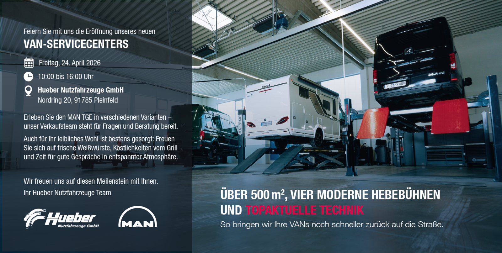 am 24. April 2026 ist es so weit: Wir eröffnen offiziell unsere neue MAN TGE Werkstatt am Standort Nordring 20 in Pleinfeld.